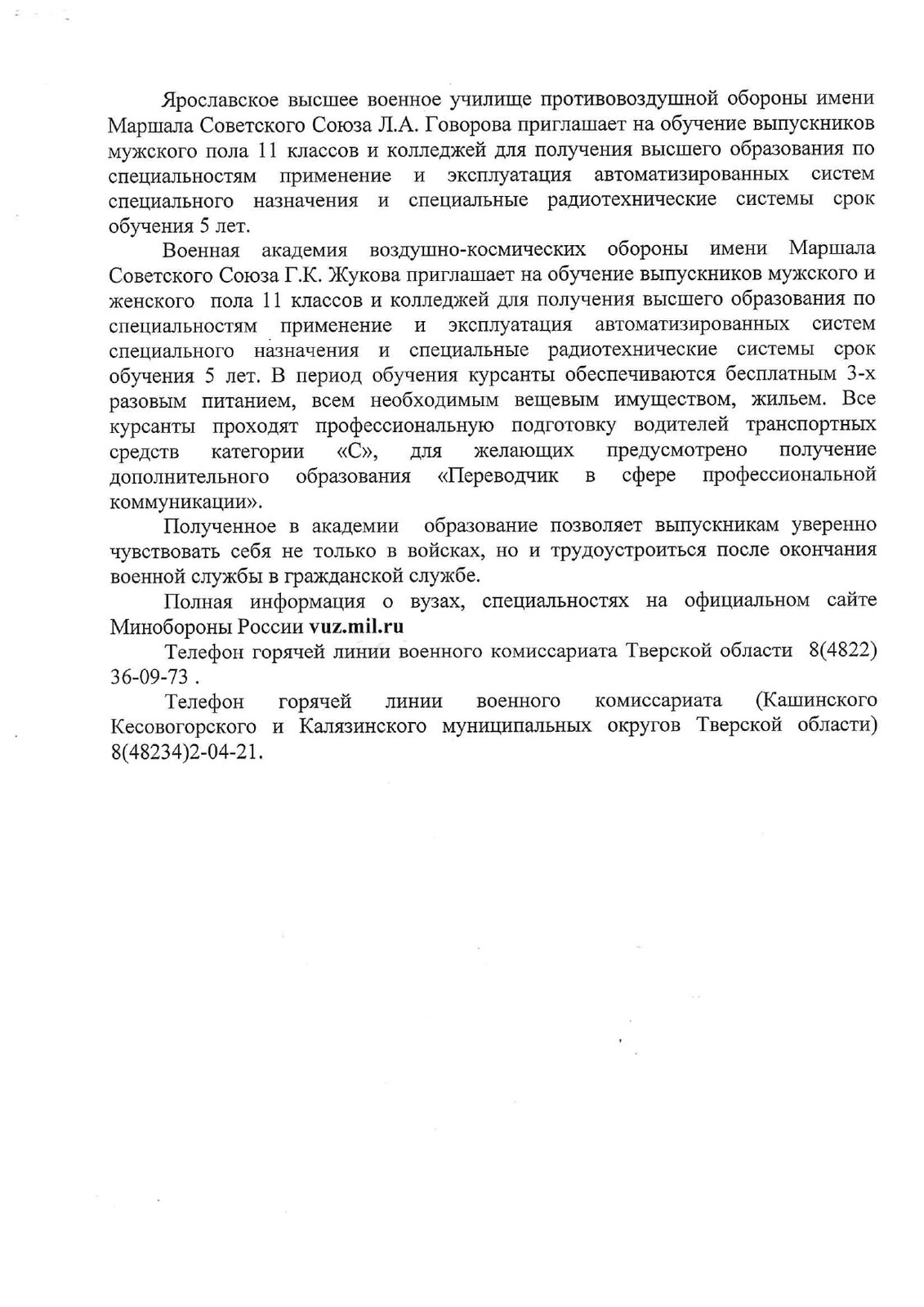 Приглашение для выпускников !
