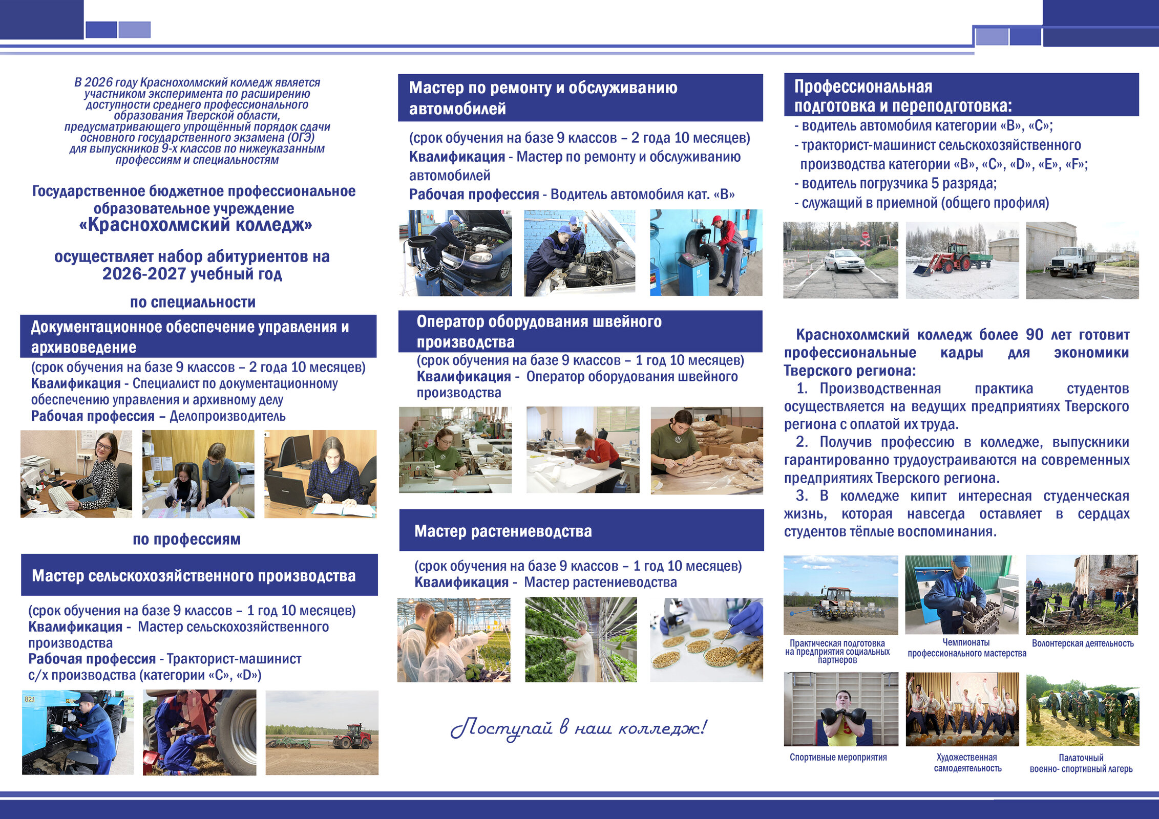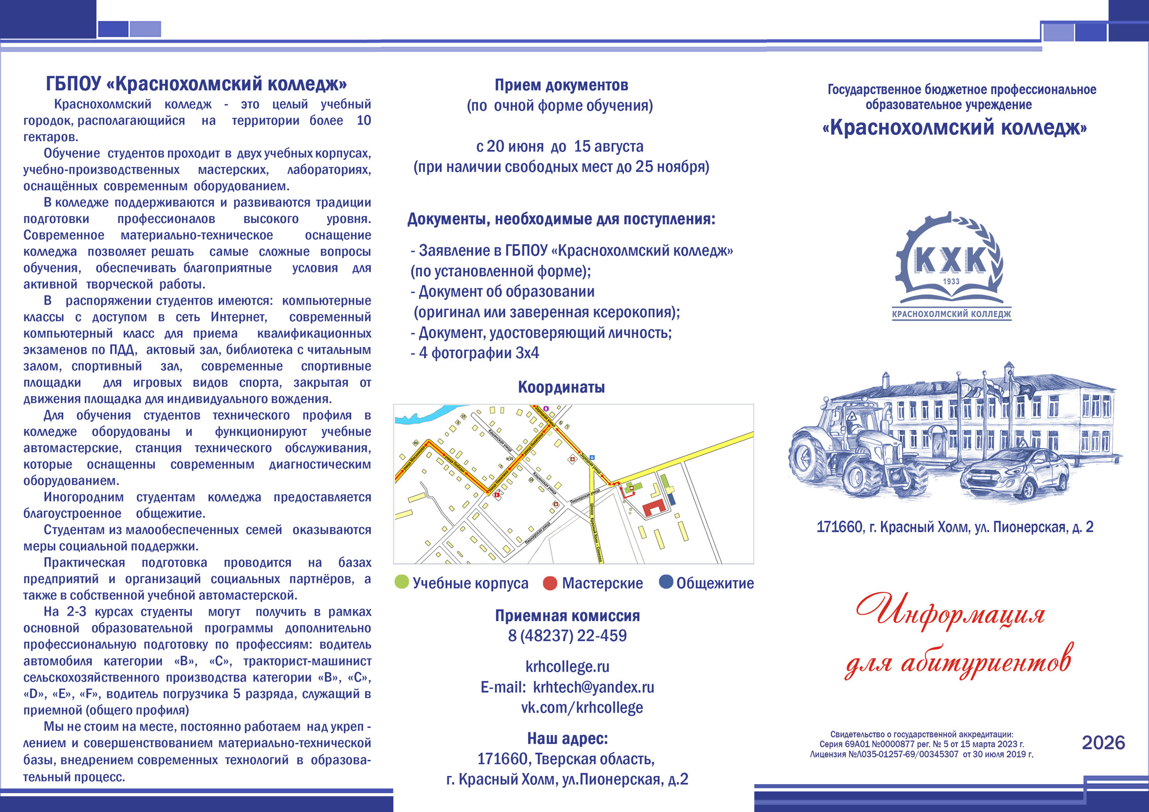 Государственное бюджетное профессиональное образовательное учреждение "Краснохолмский колледж" осуществляет набор абитуриентов на 2026-2027 учебный год